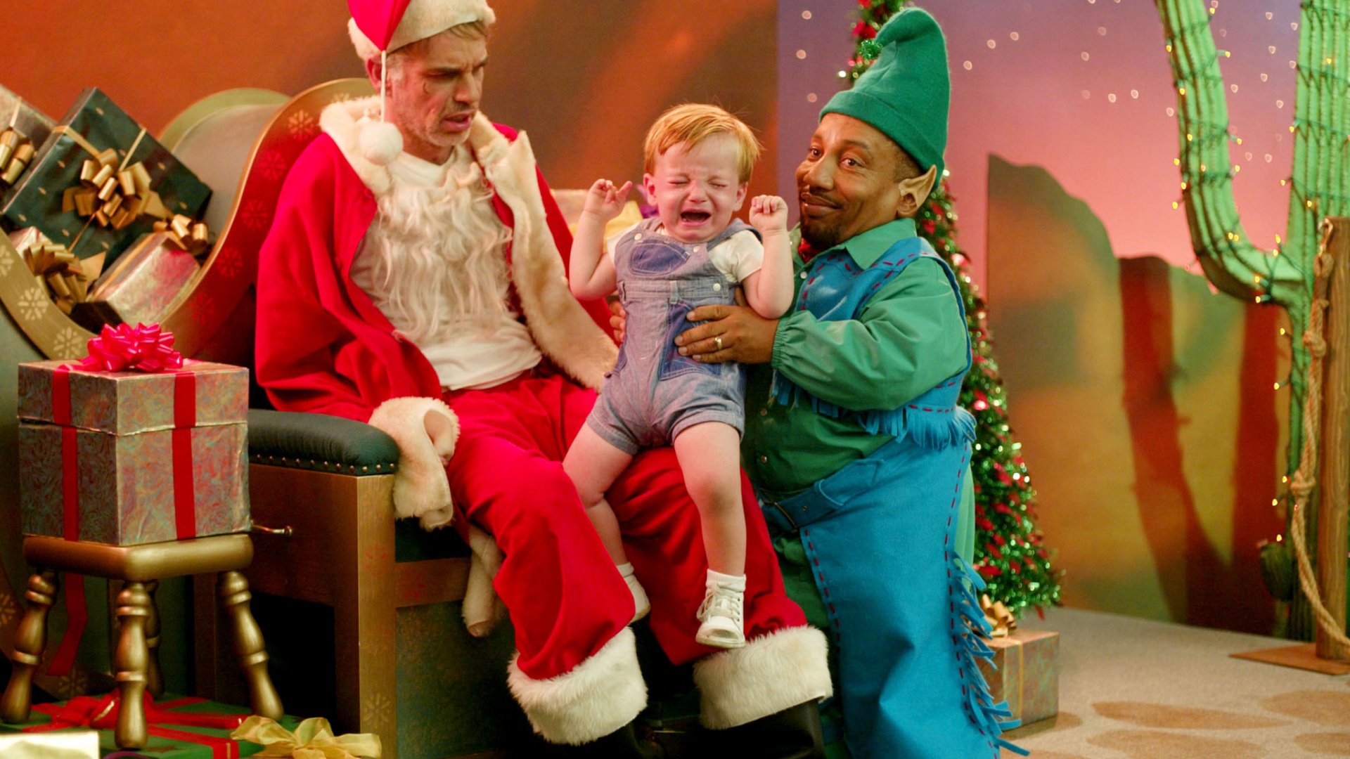 As a yearly tradition to make money for the following year, Willie (Billy Bob Thorton) works with Marcus (Tony Cox) and his wife, Lois (Lauren Tom) to work the Santa displays in malls only to rob the stores on Christmas Eve. Their operation has seen better days as Wille struggles to fight off his alcoholism and sex addiction to the dismay of his colleagues. In their latest attempt, Willie meets a kid that changes his attitude towards life.