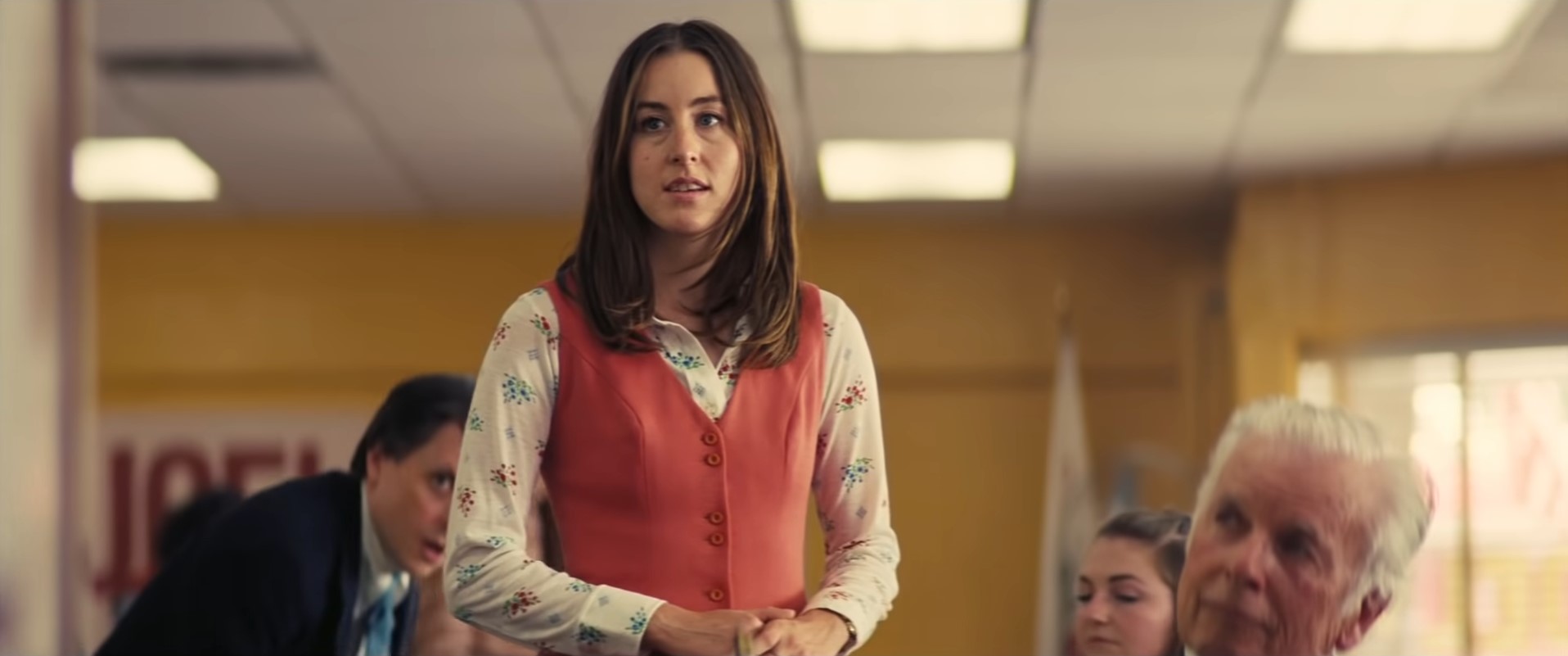 Alana first gets seen working a job she obviously hates along with sexually harassing co-workers, which makes her first interaction with Gary incredibly refreshing. Her interactions with other adults only infuriate her because she sees what awaits her. It’s what makes her relationship with Gary something of a comfort for her, as she feeds off his youthful zeal of getting ahead in life through his various schemes and throughout the film she tries to do the same thing herself. This friendship pushes her to reinvent herself on several occasions in order for something to stick whether it be an actor, political volunteer, or business partner. Alana reigns in this relatbality because many 25-year-olds find themselves in the dilemma of being closer to 30 rather than being a kid with life not going exactly as intended.