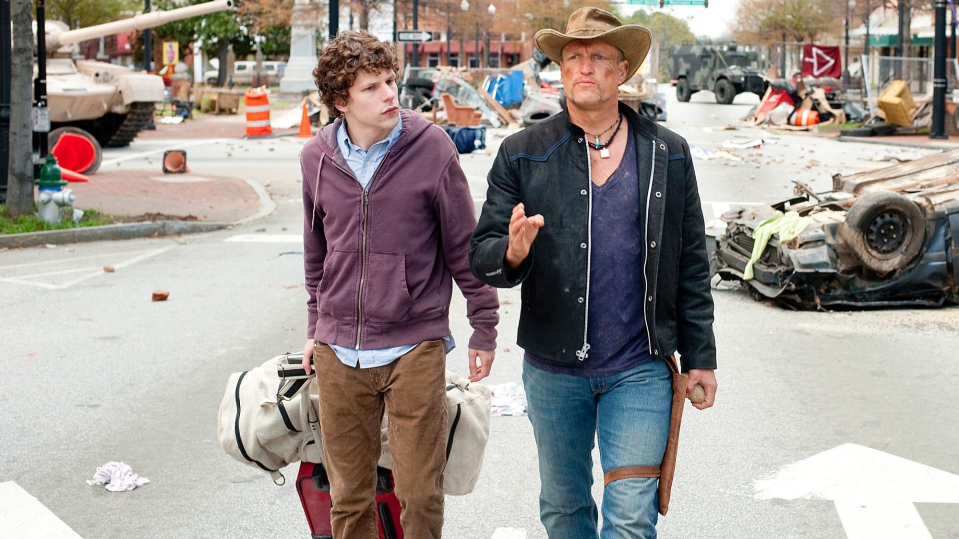 With the world run amok by zombies following an outbreak, survivors decide to go by their city of origin as Columbus (Jessie Eisenberg) seeks to head to the Ohio city in order to find his parents. On his way, he runs into Tallahassee (Woody Harrelson), who takes him on as a partner as they try to navigate this crazy world as Columbus continues to teach the audience his rules of essential survival.